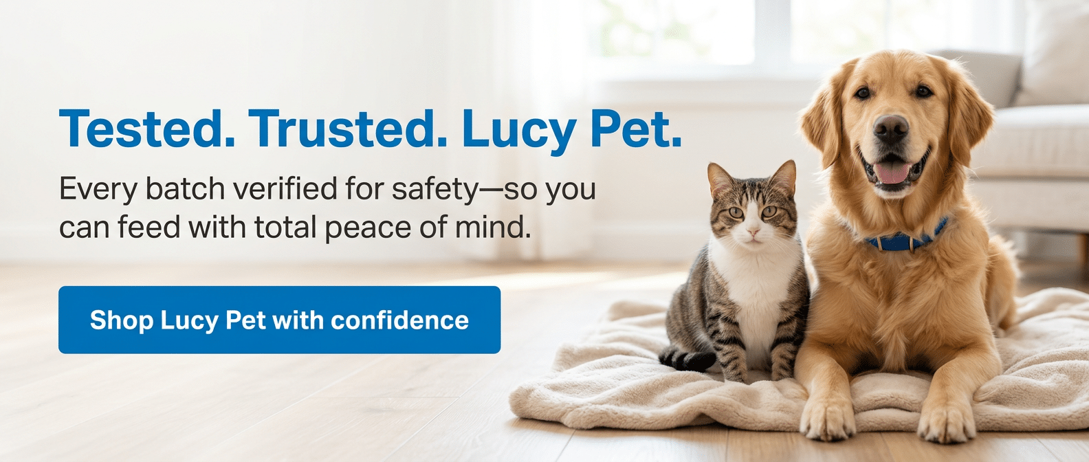 At Lucy Pet, your pet’s health is our highest priority. That’s why we go beyond industry standards, independently testing every product through a certified pet food safety laboratory so you can shop with complete confidence.